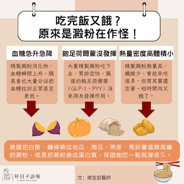 30秒談減重 | 吃完飯又餓?原來是澱粉在作怪!(文:謝宜庭醫師) ...