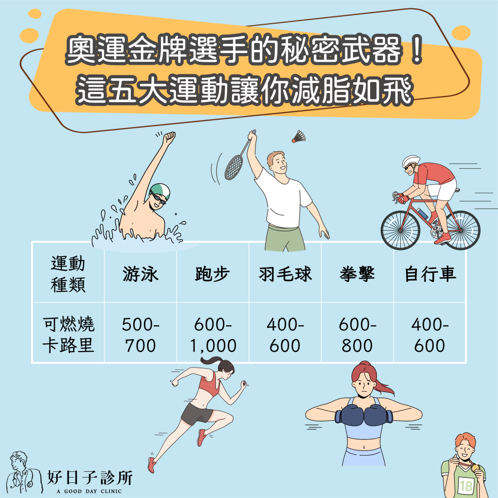 事實上,奧運項目中的許多運動不僅具觀賞性,還非常適合普通民眾作為減脂運動。