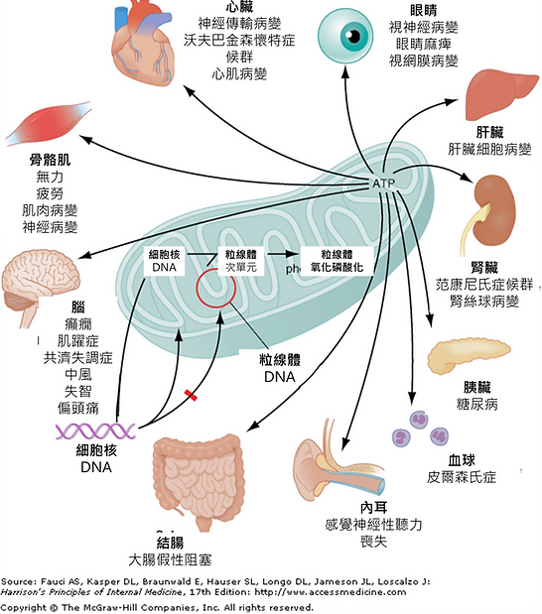當發電機功能不良,細胞沒有足夠能量,就會導致慢性發炎,及老化相關的疾病,包括胰島素阻抗、代謝症候群、第二型糖尿病、心血管疾病,及阿茲海默症。
