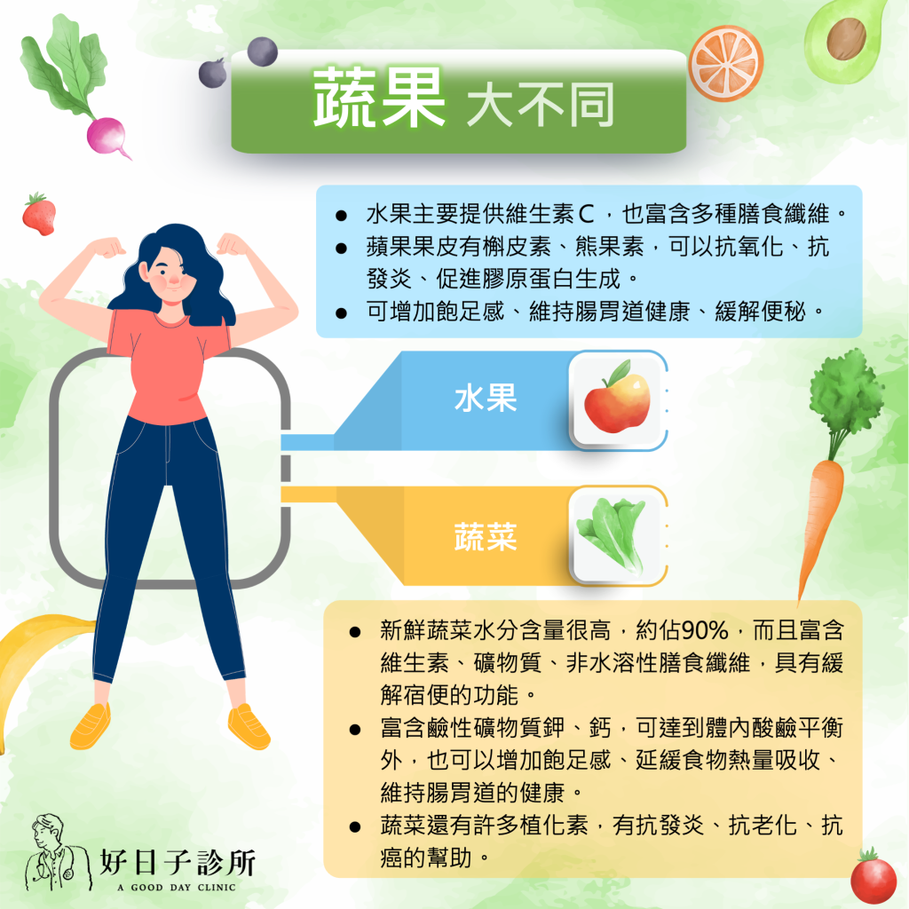 診間問診時,有人問我,醫師,我可以用水果取代蔬菜嗎?我是外食族,蔬菜比較不好準備,水果隨買隨吃比較方便。
