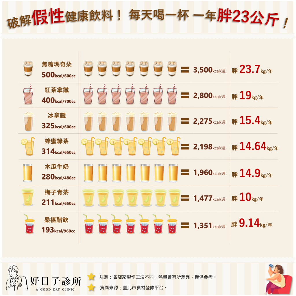 每天1杯紅茶拿鐵—> 1年胖19kg