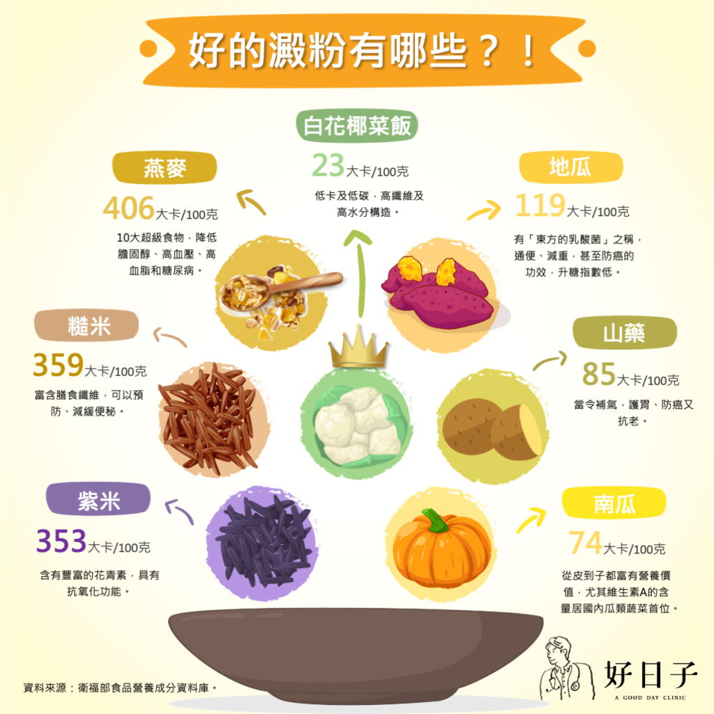 很快地,禁麵食挑戰已經進行一週囉!糰子們慢慢習慣了「不能吃麵」這件事,但這時會遇到一個問題,不能吃麵的話,澱粉類該挑選哪些比較好呢?