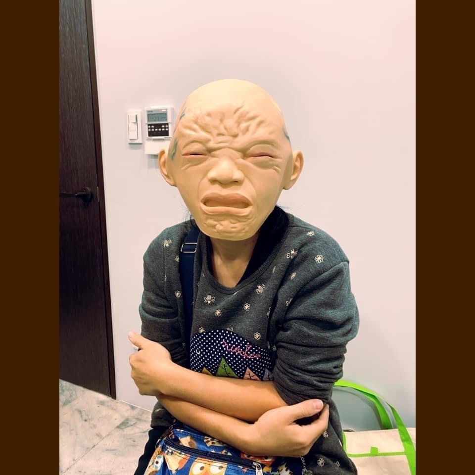 買不到口罩只好戴頭罩來看診的糰子