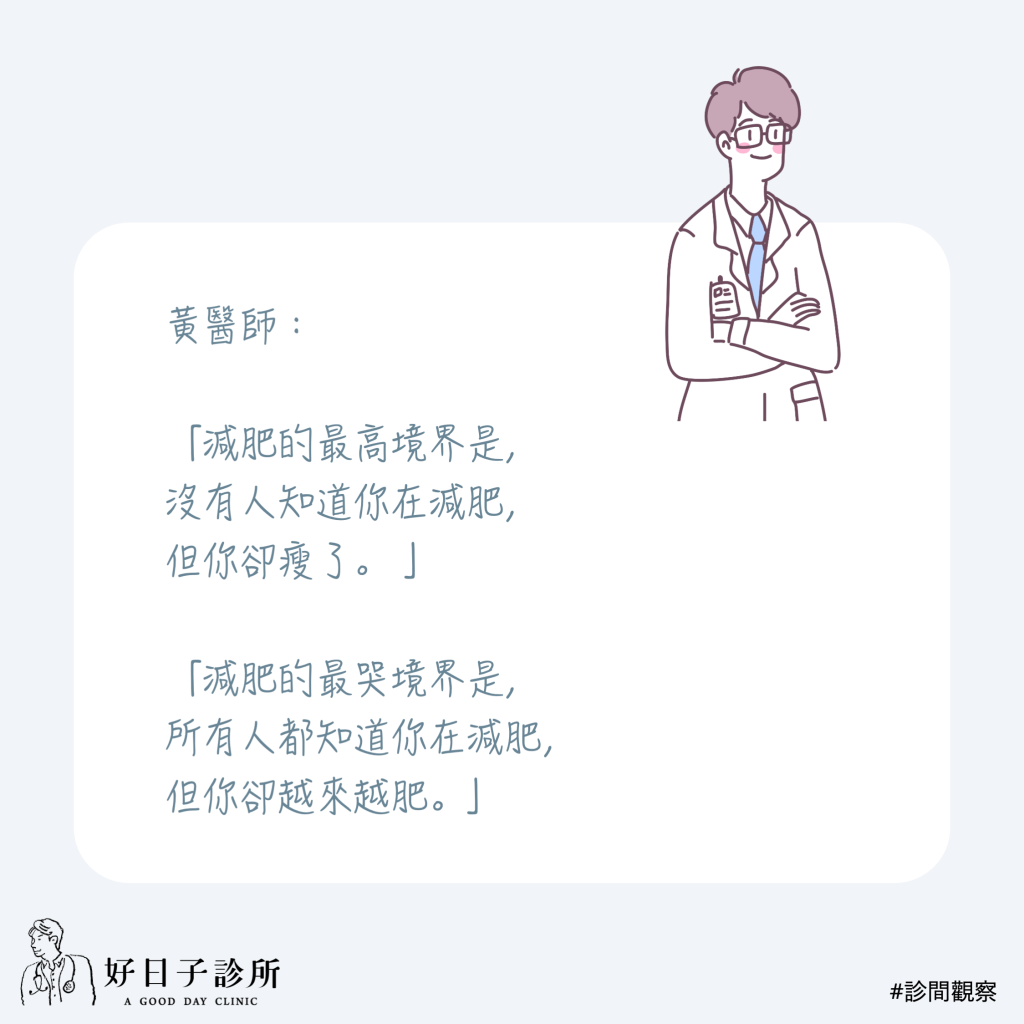 黃醫師幫病人減重這麼多年來,在診間觀察到減重百態。