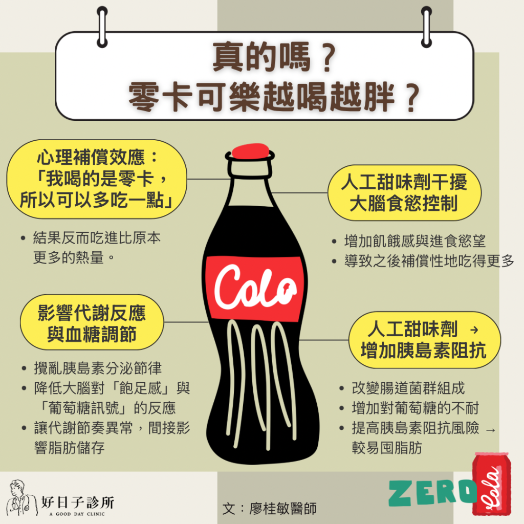 零卡可樂,理論上它幾乎不含熱量或糖分。但現實中,許多研究與臨床觀察發現,長期飲用「零卡」飲料與體重增加、胰島素阻抗甚至食慾增加可能相關