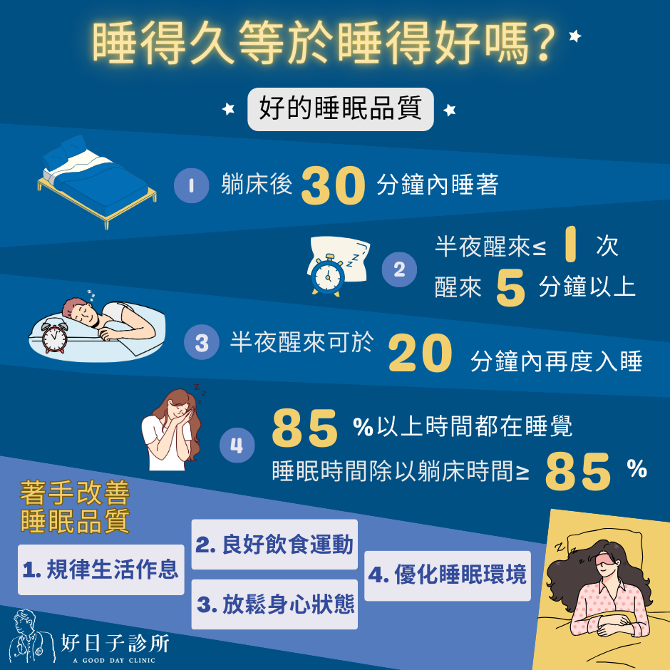 除了睡眠時間之外,還要搭配良好的睡眠品質才能算睡得好!