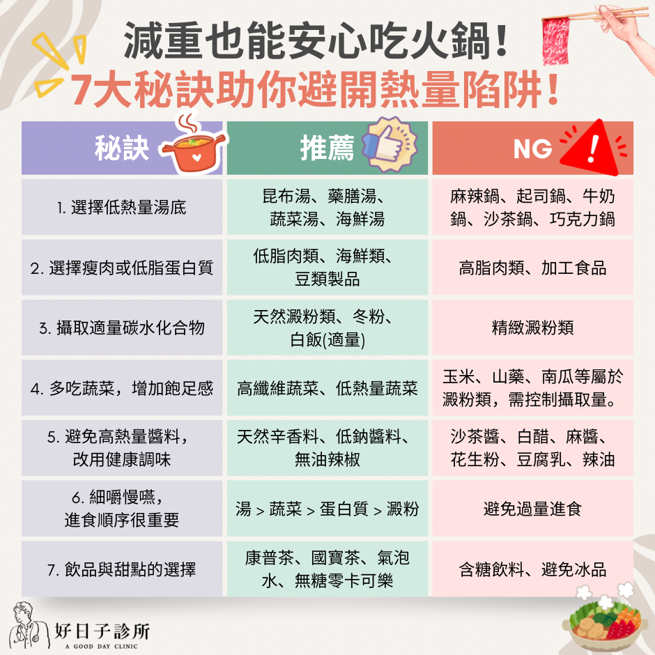 然而,真的完全不能吃火鍋嗎?其實,只要掌握正確的選擇與進食技巧,就能大大減低熱量攝取量。