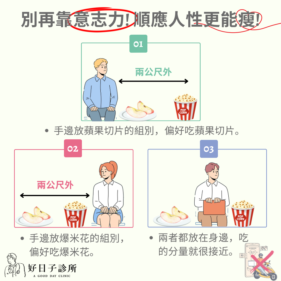 只需要隨手拿不到,就可以減少吃東西的頻率和分量。