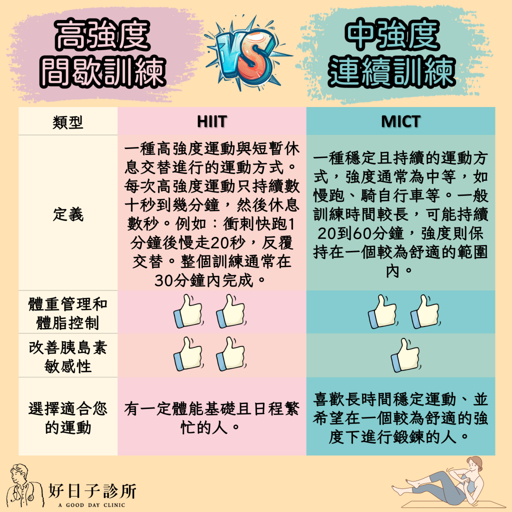 診間常有病人為了瘦身心切,詢問高強度間歇訓練(HIIT),是否能比一般中強度連續訓練(MICT)能更快地達到瘦身的效果,今天我們就來了解一下這兩種運動方式的不同之處。