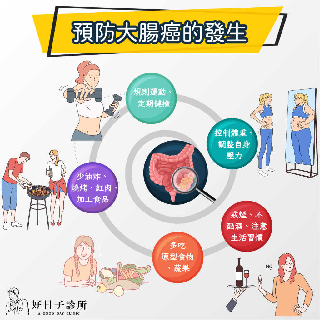 而平時可以藉由一些方式去預防疾病的發生,例如:規則運動、減重、戒菸酒,多吃原型食物、多吃蔬果,少油炸、燒烤、加工食品、少吃紅肉。