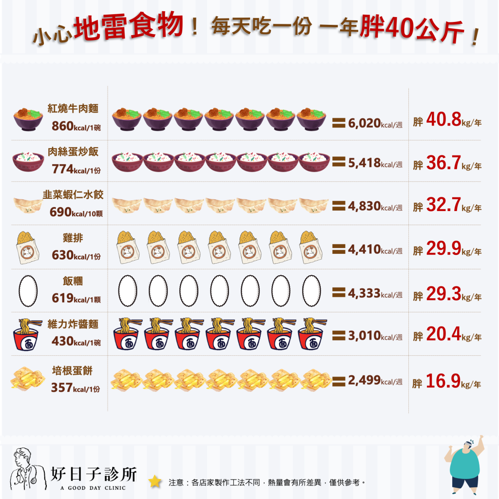 每天一份紅燒牛肉麵 -> 一年胖40.8公斤