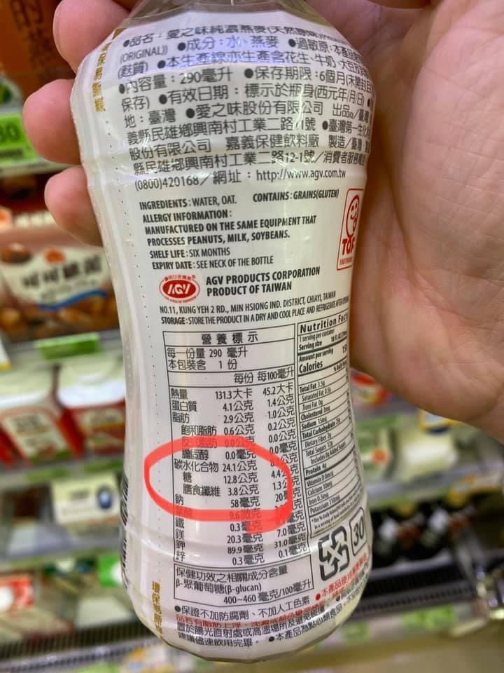 有些廠牌號稱無糖,但雖然它並沒有額外加糖,但因為燕麥飲在泡水軟化的過程中,澱粉酶被活化,將燕麥中的澱粉分解為麥芽糖,所以糖量很高。